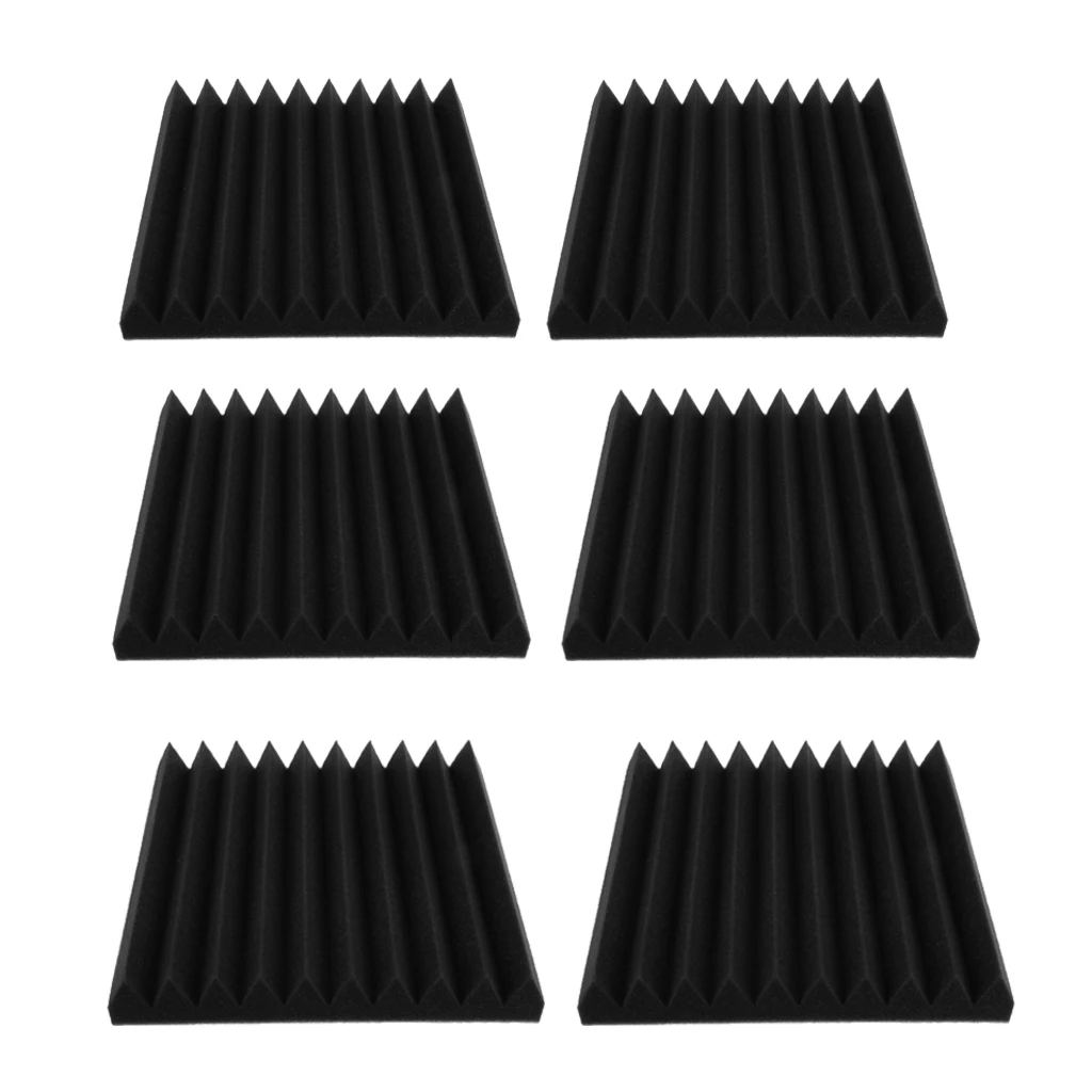 6pcs Studio Acoustic Foam Panel Soundproofing Wedge Wall Tiles 30 x 30cm |